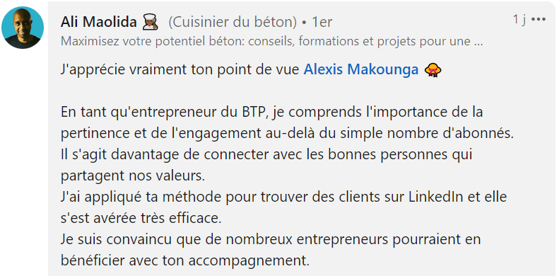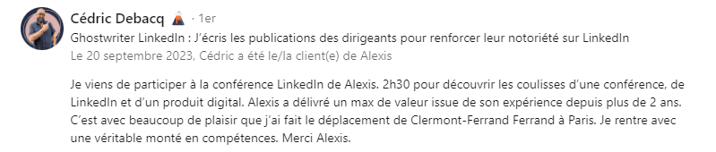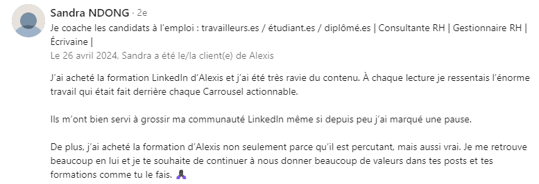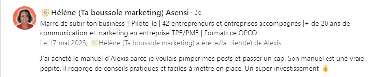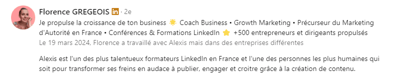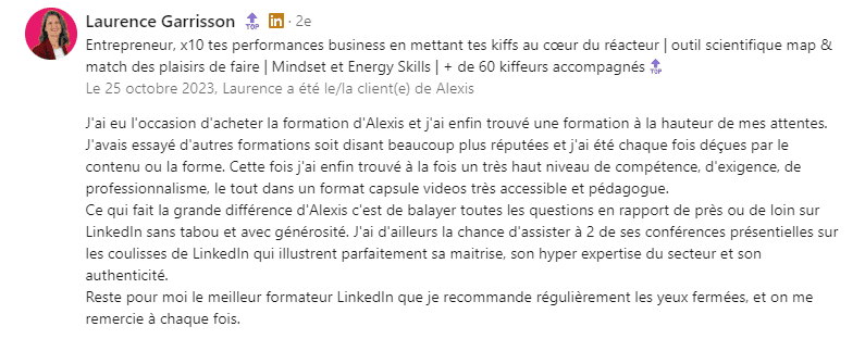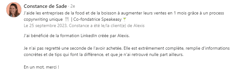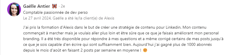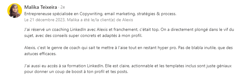 Ma mission, c’est de te faire gagner de l'argent et faire décoller ton business en devenant une référence sur LinkedIn comme certaines personnes que j’ai accompagnées : *