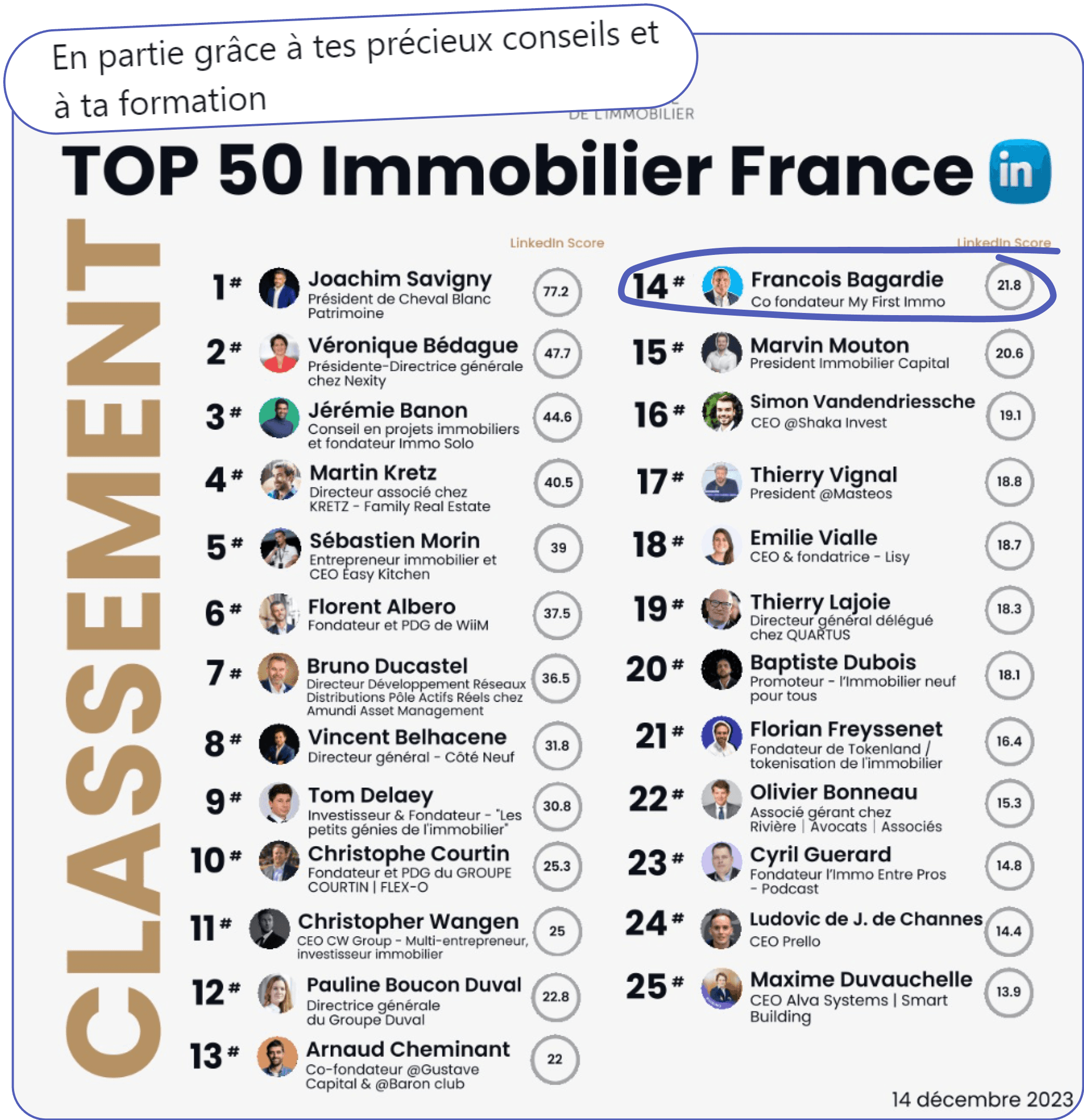 Francois Bagardie est entré dans le Top 14 des créateurs les plus influents dans l’immobilier.