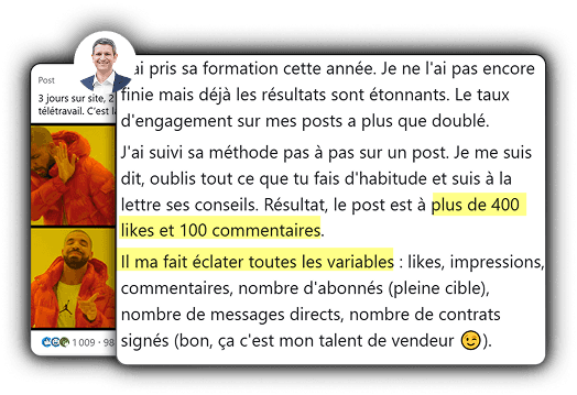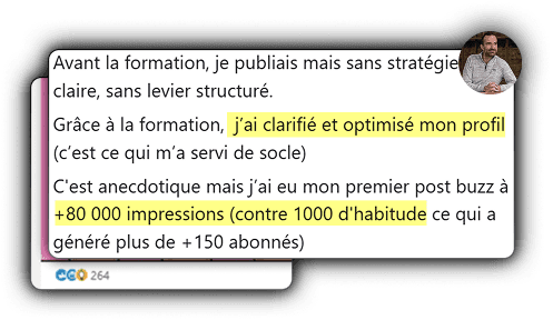 Tu reçois des vidéos chaque jour jusqu’au 24/11 pour transformer ton profil en page de vente, construire ta stratégie de contenu et trouver tes clients sur LinkedIn.